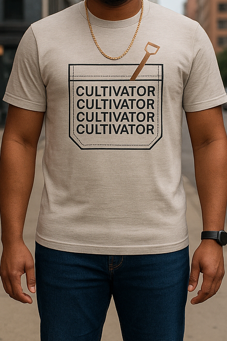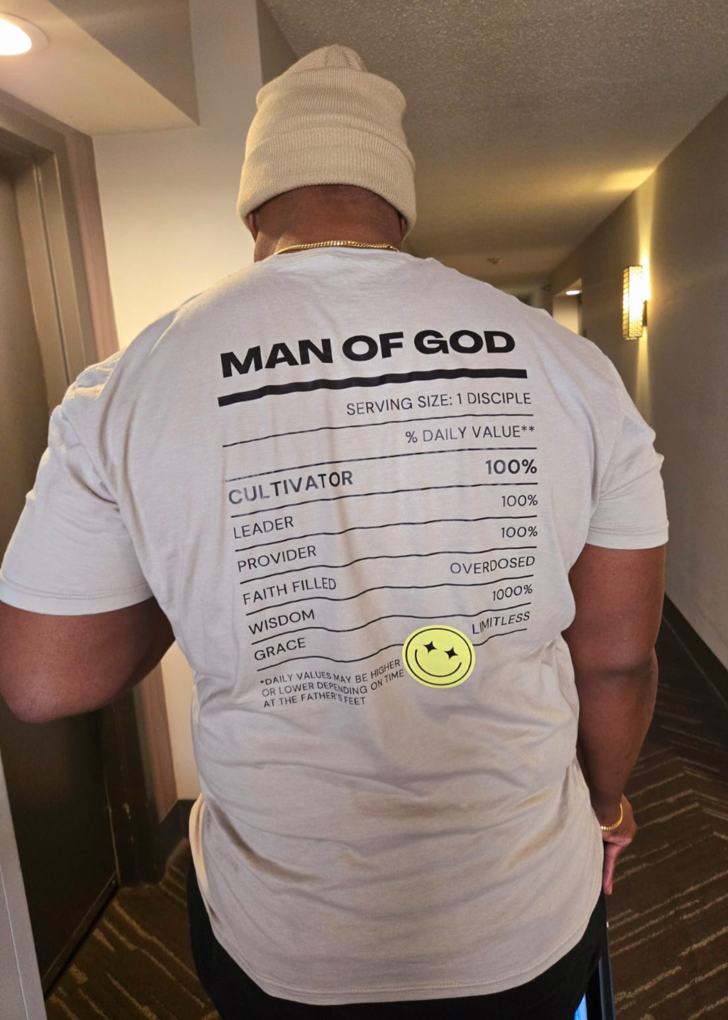 This shirt is a bestseller from Galentine Vibes 2025 for good reason! The front decrees that your man is a CULTIVATOR while the back lists character traits of a true Man of God.
